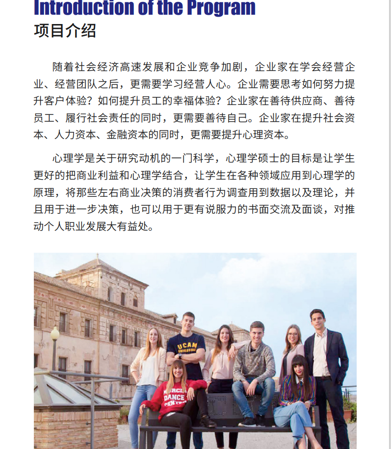 2023年西班牙武康大学心理学硕士学位课程招生简章